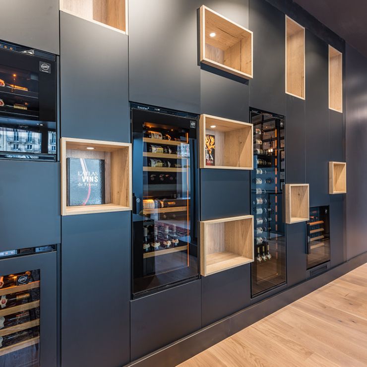 Visitez notre showroom et parlons ensemble de vos projets vin : découvrez nos caves à vin petites et grandes capacités, solutions de rangement modulables, climatiseurs de pièce dédiée au vin ainsi que nos bars à vin et distributeurs de vin.